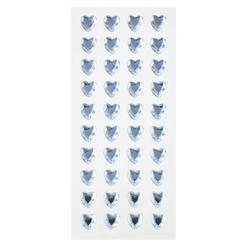 This package of adhesive rhinestones provides plenty of opportunity to bling your scrapbook, card making and other paper craft projects. These heart-shaped, clear rhinestone gems can be used in a group or singularly. Details:Includes 40 piecesAdhesive backed