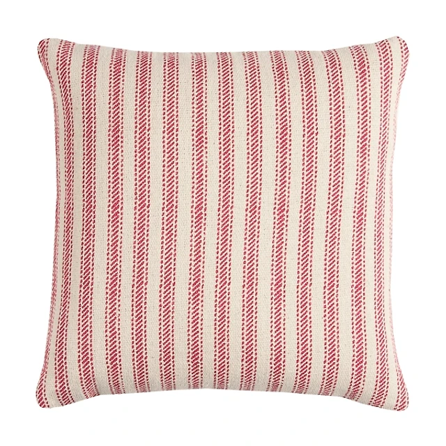 Red and Natural Ticking Stripe Pillow