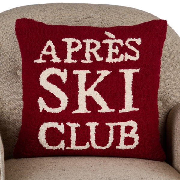 Red Apres Ski Club Hooked Pillow