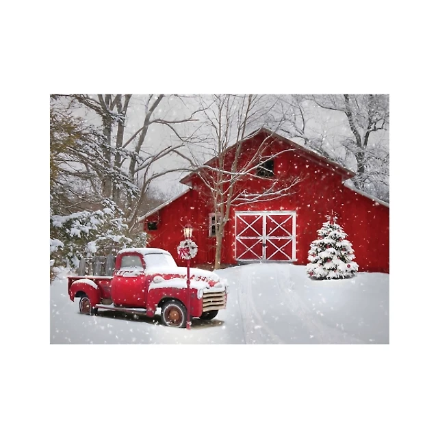 Winter Christmas Barn Canvas Art Print, 32x24 in.