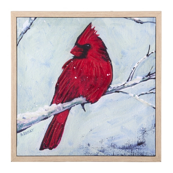 Enjoy the beauty of winter from the comfort of your home with this Red Cardinal on Snowy Branch Framed Canvas Print. Bright red against a frosted backdrop, this bird will pop on any wall! Overall dimensions Width: 13 in. Depth: 1.5 in. Height: 13 in. Distinctively printed on stretched canvas Ivory frame around wrapped canvas Cardinal subject Hues of red, blue, white, and red Print with pained embellishments Hangs from back-mounted hardware Care: Dust with a soft, dry cloth. Contact your local Kirkland's store for availability. Quantities and selection may vary by location.