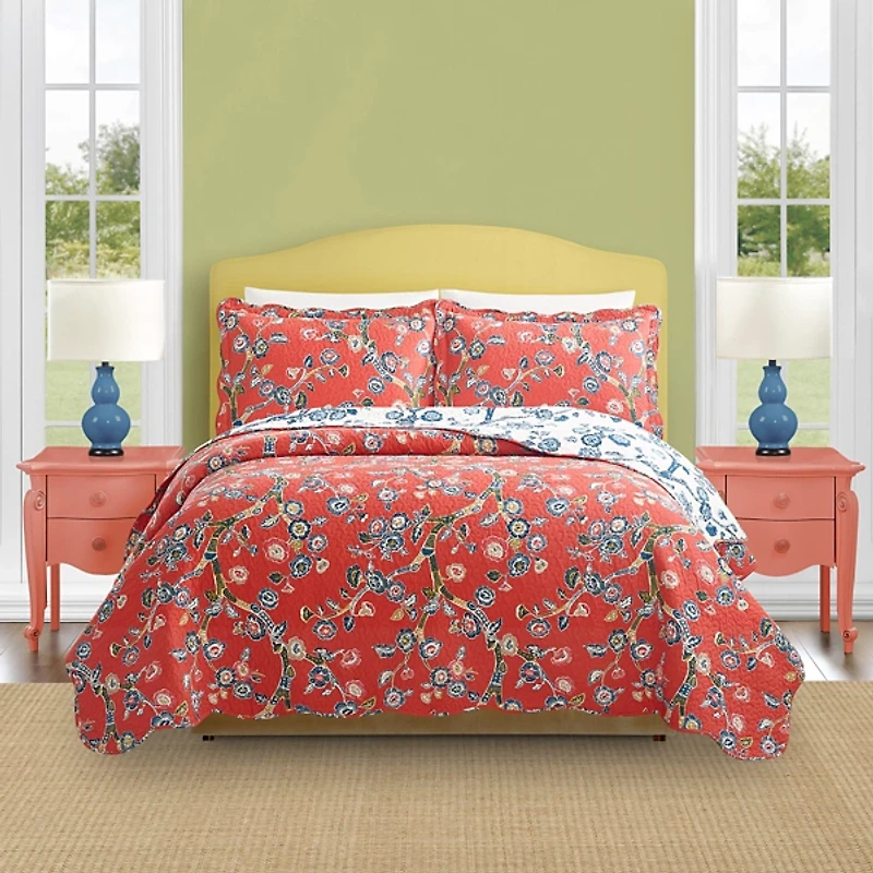 Red Floral Dreams 3-pc. King Quilt Set