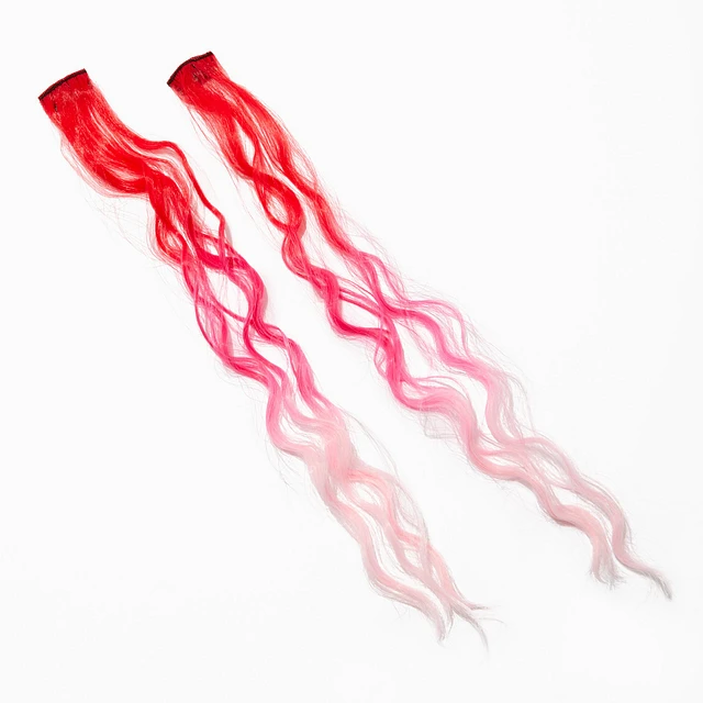 Red & Pink Ombré Curly Faux Hair Clip In Extensions - 2 Pack