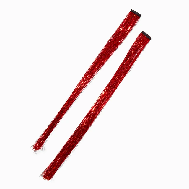 Red Tinsel Faux Hair Clip In Extensions - 2 Pack