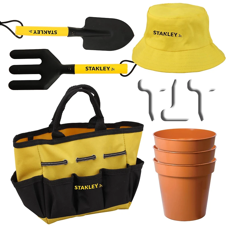 Gardening is a great way to enrich a child’s play time. Keep your kids active, engaged and learning with a fun family gardening project. Give him or her hours of fun combined with development of skills and character with our STANLEY Jr 10-piece Garden Tools Set starter kit for kids. What will you grow today?Details:Multicolored10 piece setSuitable for ages 3 years and upNot for children under 3 yrsTo be used under the direct supervision of an adultContents:Hand TrowelHand ForkTool BagSun Hat3x Plant Labels3x Plastic Pots