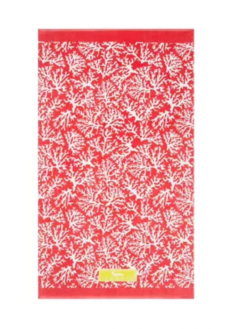 Head to the beach pool and take this beautiful oversized SCOUT beach towel with you! This towel is a collection of white coral reef pieces on a pink ground, with pink borders on each end. 480 thread count Novelty pattern Imported Product Specifications 40" X 70" Material & Care Cotton Machine washable