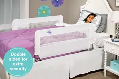 If safety is your top priority and your toddler is ready to transition to a big kid bed, give the Regalo Extra Long Swing Down Bed Rail a try. Ideal for your “wild” sleeper who needs protection from rolling out of bed, the all-steel construction toddler bed rail is durable and holds up to everyday use. The bed rail measures 20” high to accommodate thick mattresses and extends an impressive 54” to provide the utmost coverage of the bed. For added convenience, the rail swings down and out of your way, making it easy to access the bed. With added protection, the Regalo Extra Long Swing Down Bed Rail provides a safe sleep as your little one transitions to sleeping in a bed