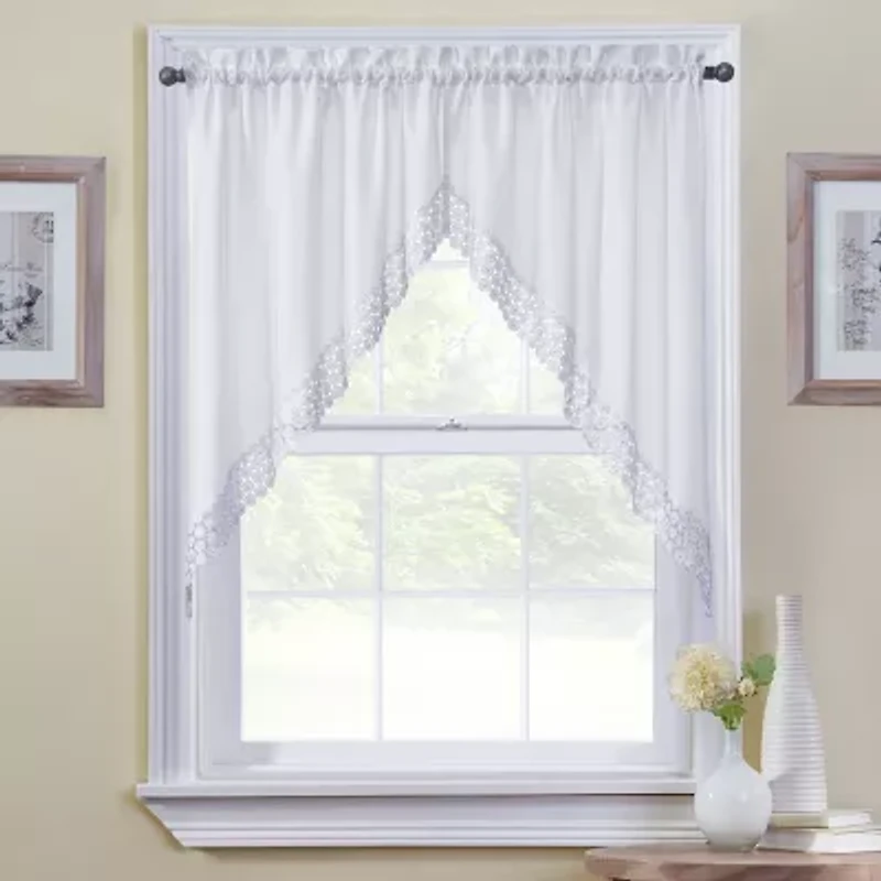 Lacy flowers adorn the edges of this charming swag valance pair. Hang these wherever you want to add a simple but elegant finishing touch.