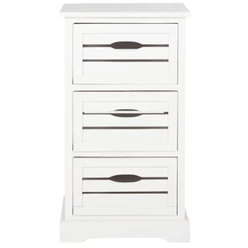 This stylish 3-drawer cabinet is the charming answer to all your organizational needs. A distressed cream finish and clean lines make it at home in the kitchen, home office or craft room.