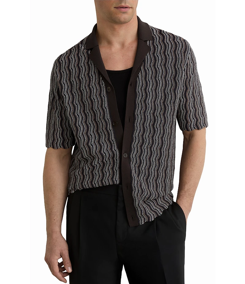 Reiss Drake Vertical Wave Short Sleeve Woven Camp Shirt