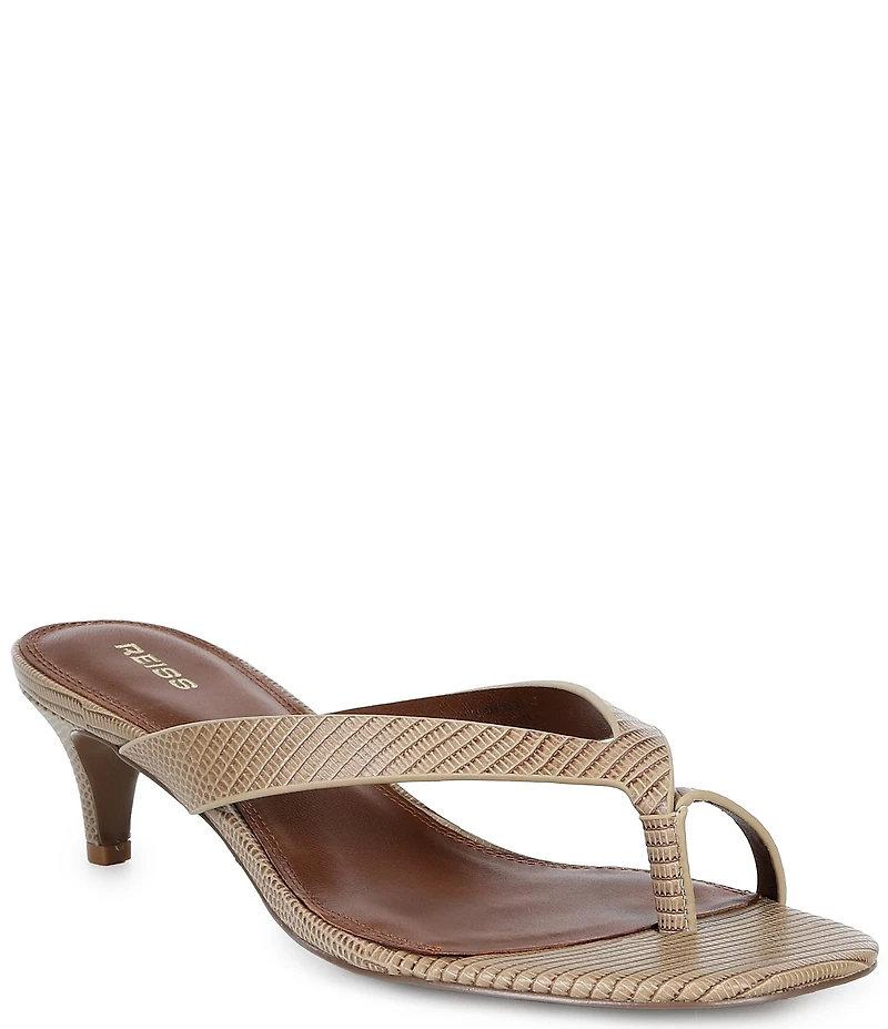 Reiss Mia Embossed Leather Toe Loop Thong Kitten Heel Sandals