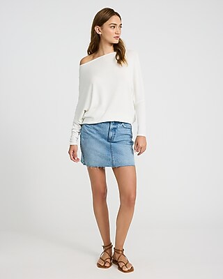 Created in a soft and stretchy knit fabric, this comfortable relaxed tee features long dolman sleeves and an off the shoulder neckline.