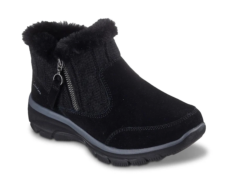 The Skechers Relaxed Fit Easy Going Cozy Inn bootie can offer the comfort and convenience you need. Whether it's the 3M Scotchgard treatment that repels water and stains, the Relaxed fit design offering extra space at the toe and forefoot, or the cushioning Air-Cooled Memory foam insole, you'll love every step in this zipper bootie.