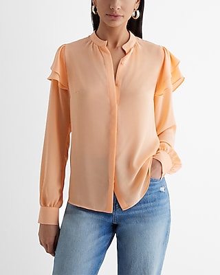 The Portofino shirt is a versatile top for a day at work or brunch with the girls. This style features a fun gathered neck & chic ruffle shoulders. Pair with your best denim for a stylish look.