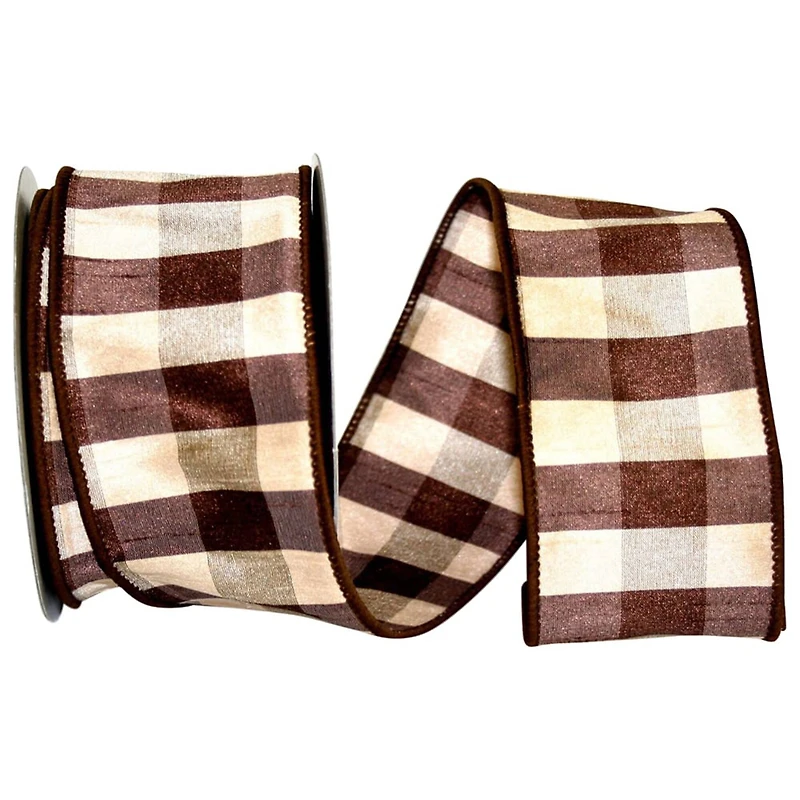 Reliant 2.5" x 10yd. Brown Check Silk Wired Ribbon