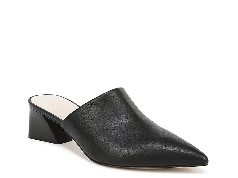 Channel refined Italian-inspired style with this Franco Sarto Remilia mule. Designed with sleek synthetic upper and effortless slip-on fit, it pairs modern poise with timeless appeal. The pointed toe elongates the silhouette, while the artfully shaped heel adds a bold architectural touch.