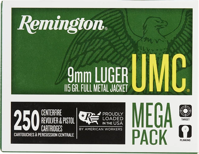 Remington UMC 9mm Luger 115-Grain Full Metal Jacket Centerfire Handgun Ammunition - 250 Rounds