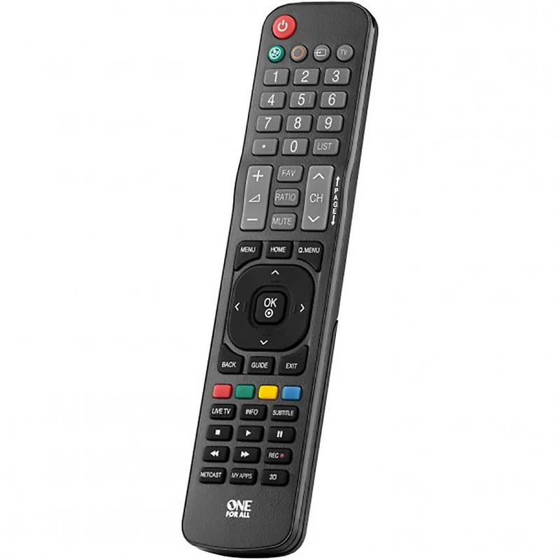 The One For All Replacement Remote for LG TVs is the ideal replacement for your original LG TV remote control. You don’t need to worry about compatibility, as this remote works just the same as your original. No setup is required! Simply insert 2 AAA batteries (sold separately) and it's ready to use on all LG televisions. This replacement remote supports all common LG functions. Alternatively, you can easily use the learning feature to fully customize this remote to your needs, so you will not miss any key! This replacement remote is compatible with all types of LG TVs like LCD, LED and plasma. This is the ideal solution to replace your old or broken LG remote.