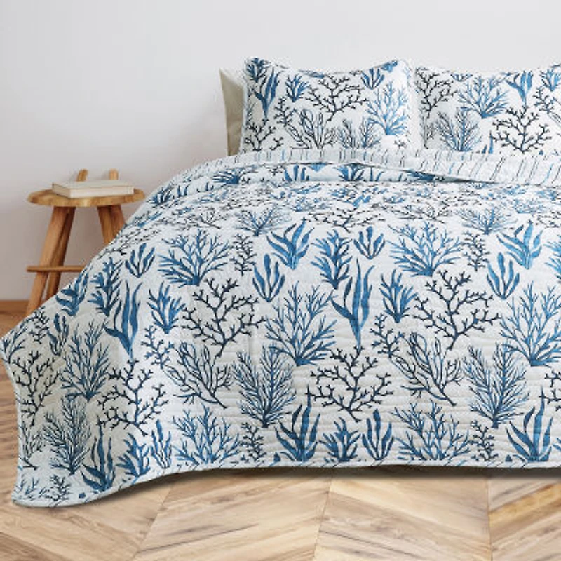 Reversible Coastal Print Quilt Set