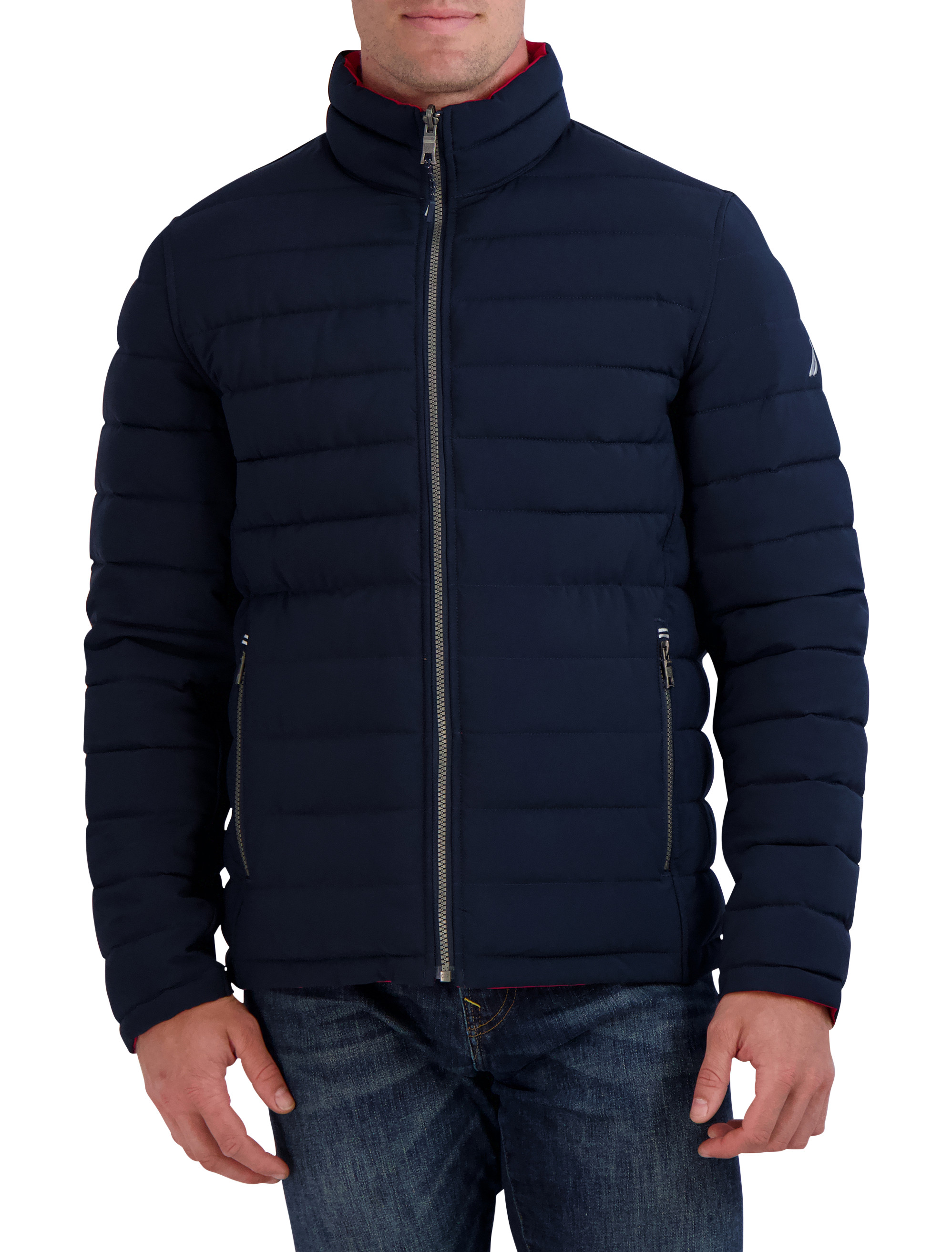 Enjoy two great looks in one style. Red on one side and navy on the other, this lightweight quilted puffer jacket is specially crafted to be water resistant so you can wear without worry. The zip-front style is comfortable and easy to wear, allowing for the freedom to move without restriction. Designed with fine Nautica style, it features the signature logo at the left chest on the red side and on the left sleeve on the navy side.