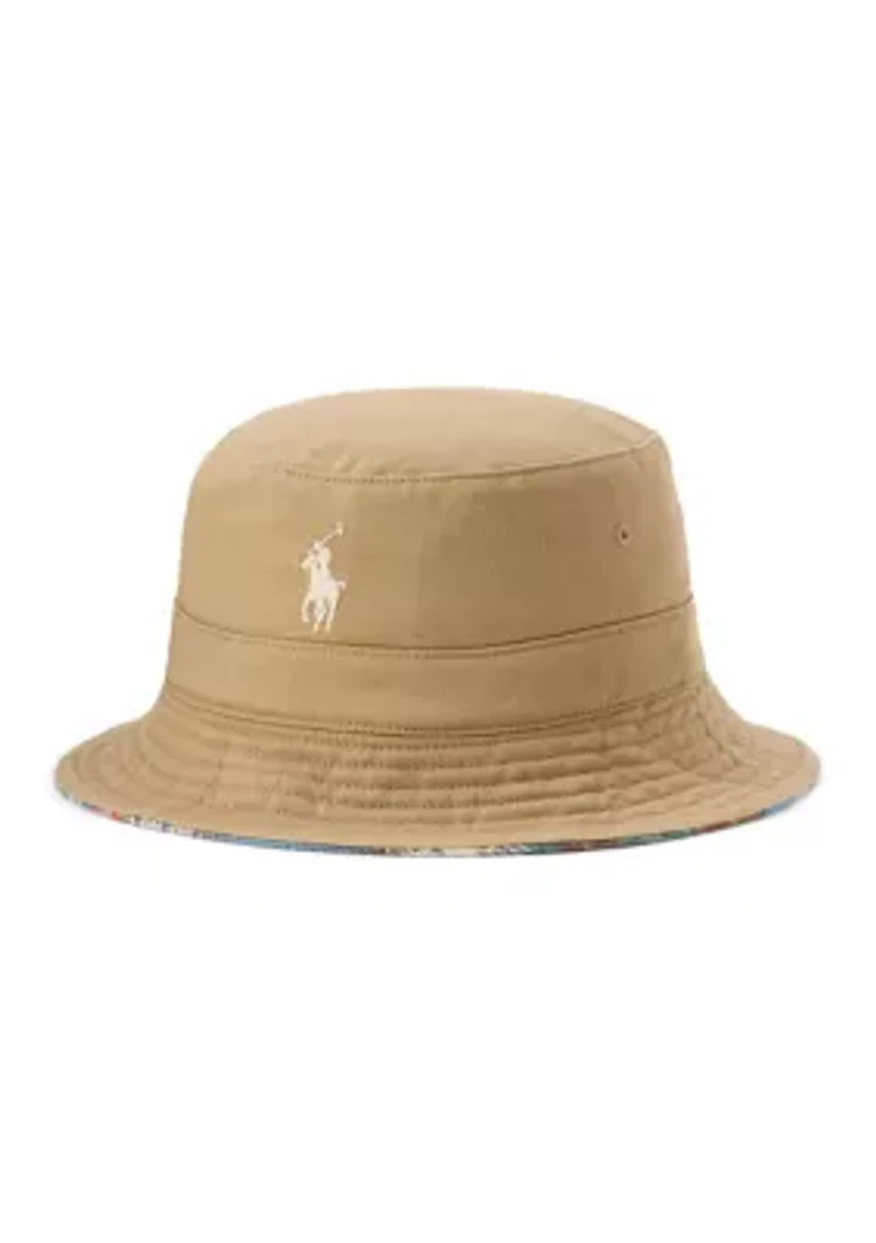 This Polo Ralph Lauren cotton twill bucket hat reverses to a plaid patchwork design that nods to the vintage utilitarian style of Polo’s flannel shirts. Seamed brim Band around the crown at the twill side Ventilating embroidered eyelets Signature embroidered Pony at the front of each side Imported Product Specifications Size S–M: 22.75" inner circumference Size L–XL: 24" inner circumference Material & Care 100% cotton Spot clean only