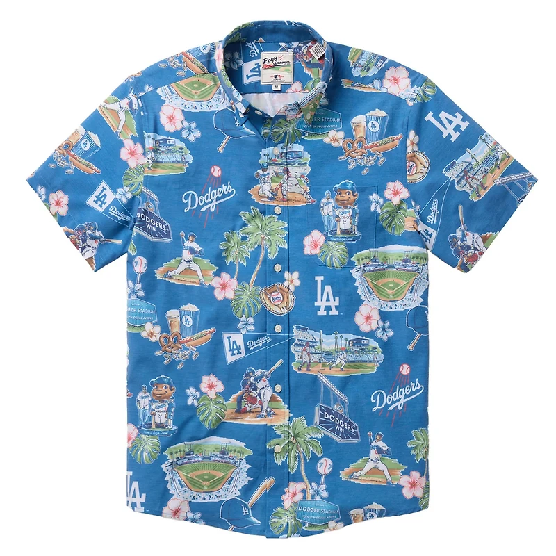Give your young fan a taste of classic Los Angeles Dodgers style with this Scenic Button-Up Top from Reyn Spooner This top features a relaxed fit with a back box pleat and side vents for ease of movement and comfort Your young Los Angeles Dodgers fan will love the unique baseball-shaped coconut buttons adding a touch of fun to this already stylish shirt