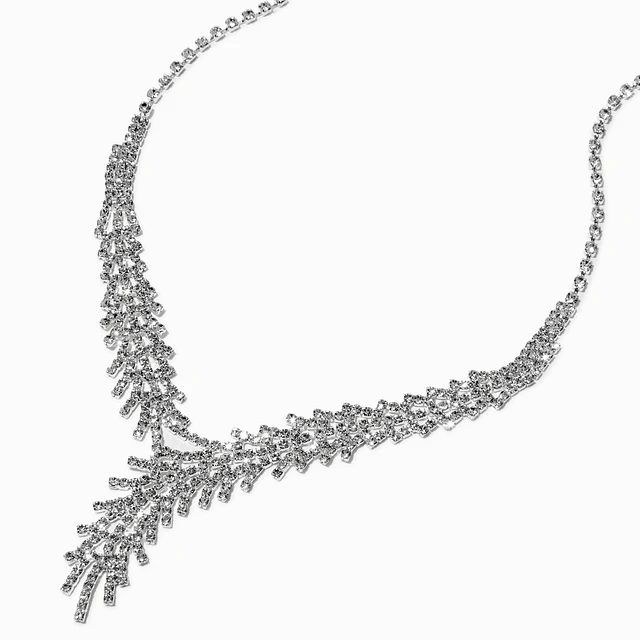 Silver Tone Y Neck Crystal Necklace