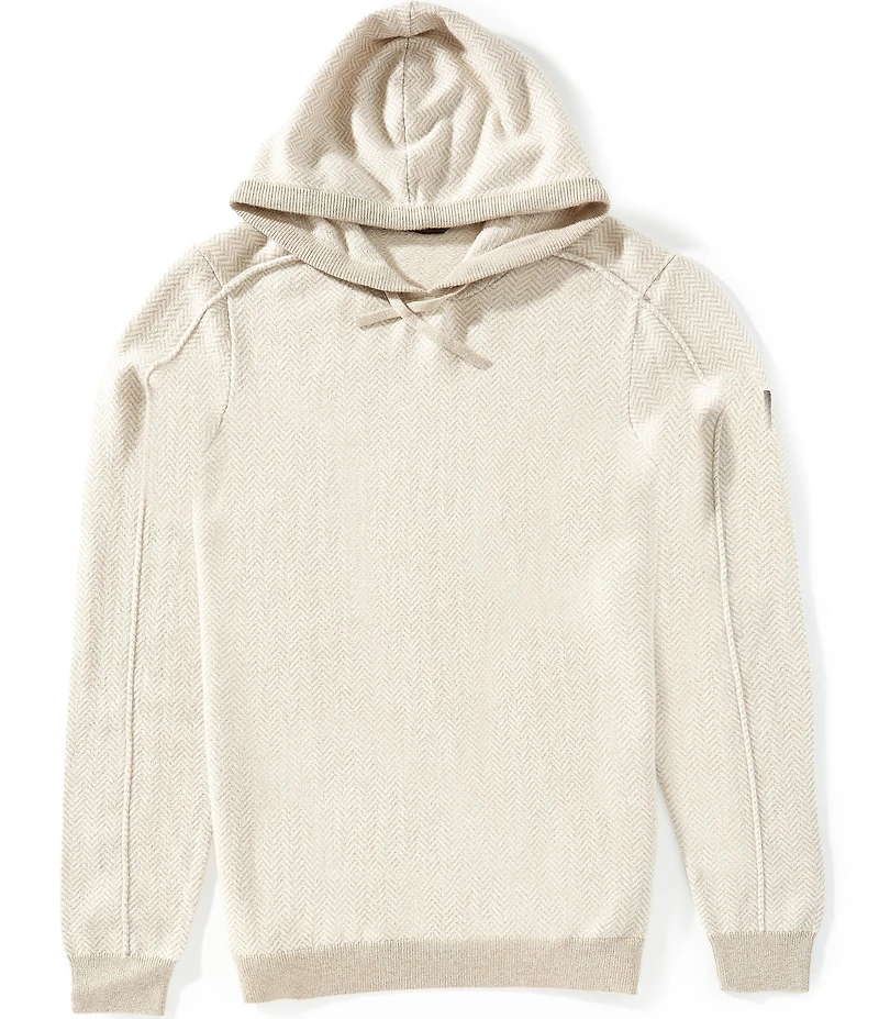 From RHONE, this hoodie features: Herringbone pattern Attached hood with drawstrings Long sleeves Straight hem Ribbed cuffs and hem Pullover construction Wool/cashmere Machine wash/tumble dry Imported.