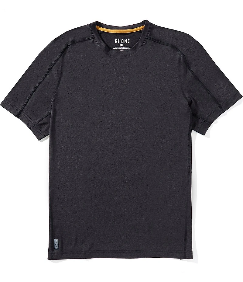 From RHONE, this t-shirt features: Solid tone Crew neckline Short sleeves Raglan shoulder seams for range of motion Reflective logo detail GOLDFUSION® anti-odor technology Breathable Stretch fabric Polyester/nylon/elastane Machine wash/tumble dry Imported.