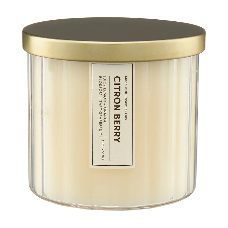 Ribbed Glass Scented Candle, Citron Berry, 18 oz