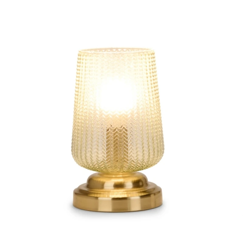 Embracing a vintage look, this Ribbed Glass Uplight Table Lamp brings bright beauty to any space. Its perfect for adding a cozy light your desk or reading corner! Lamp measures 11H in. Crafted of metal and glass Gold finish Uplight design Ribbed glass shade Shade measures 6.25 in. in diameter Socket accommodates a 40-watt, type A bulb Switch type: in-line rocker switch Features a clear, 10 ft. plug-in cord Care: Dust with a soft, dry cloth. Do not exceed specified wattage. Contact your local Kirkland's store for availability. Quantities and selection may vary by location.