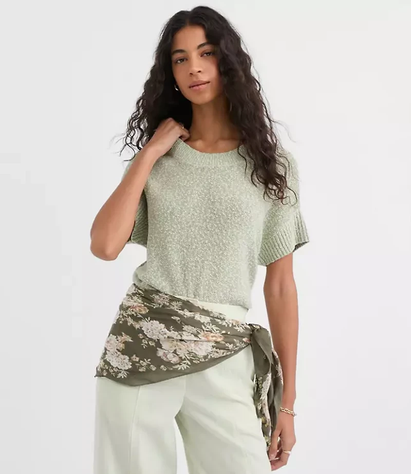 Chic and cozy wide ribbed trim highlights this irresistibly soft cotton blend knit - done in a modern wedge silhouette. Crew neck Short sleeves, Bullet1: 21 1/2"long, Imported:, Fit: Relaxed an easy shape that's just shy of loose, Length: Abbreviated - hits at natural waist, Fabrication: 58% Cotton 42 Acrylic, Garment Care: Machine Washable Loft Ribtrim Wedge Sweater Size 2XS Basil Women's by Loft Size Regular - 2XS Basil Women's Cotton, Blend Crew Neck Short Sleeve Tees Pullover Sweaters Wear To Work 58% Cotton 42% Acrylic Machine Washable Best Fall Sweaters