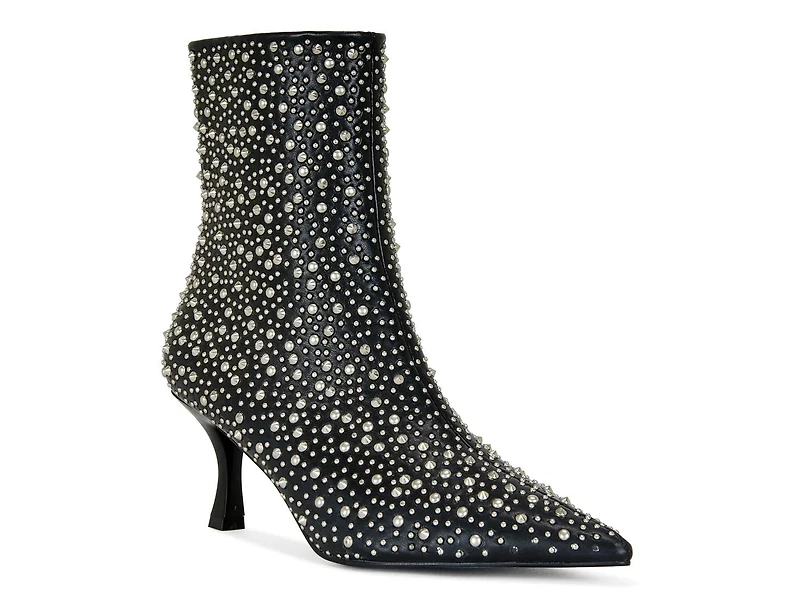 Bring bold vibes to your look with the Ridley bootie by Azalea Wang. This zippered bootie features a pointed toe and sleek kitten heel for a chic silhouette. Allover stud detailing adds edgy flair, making it the perfect statement piece for both casual and dressy looks.