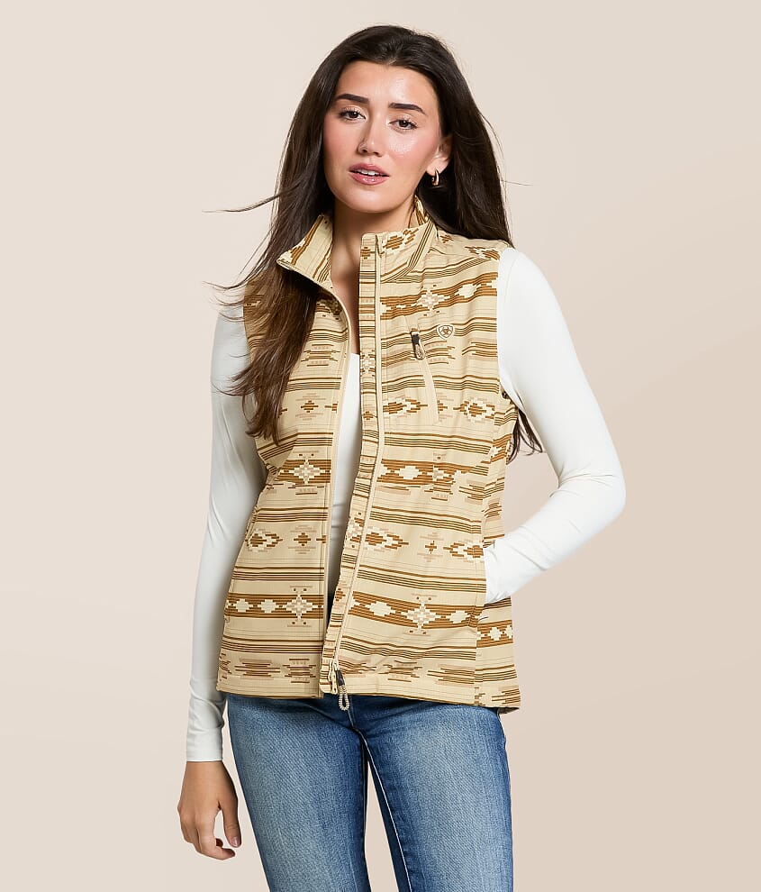 Solid zip down lined vest Wind and water resistant EcoDRY finish repels water Cool Climate Insulation for maximum warmth and comfort Bust measures 38" on size small Body length measures 24" on size small