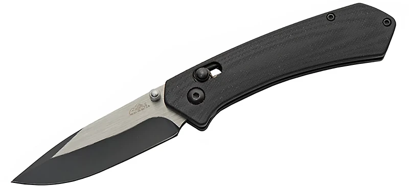 - Black G10 handle provides a firm grip