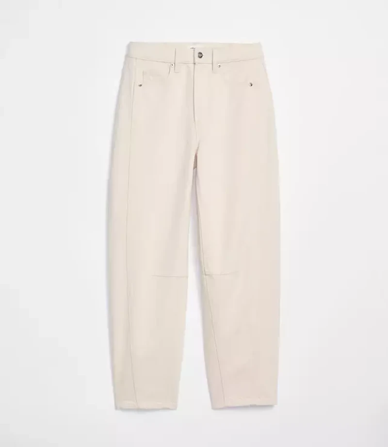 Meet our new, even better denim brand, Rivete. We believe jeans are a way of life, so we designed using higher quality, premium denim incorporating thoughtful details, like a longer fly for extra ease and comfort, perfectly - sized pockets for a more flattering shape, and durable elements such as reinforced stitching. Each style is created to be a forever favorite to build endless outfits around. Start here, Bullet1: Designed with Comfort Stretch: our mid stretch denim, Pants Details: Hidden button fly closure. Belt loops Five pocket styling., Leg Shape: Barrel - an ankle length silhouette with a curved leg that gently tapers at leg opening, Rise: 12 1/4"high rise, sits at natural waist, Imported:, Fit: Our curvy jeans are designed to perfectly fit and flatter curves with a roomier hip and thigh - the gap - free waistband of your dreams!, Length: Ankle length, 28"inseam, Fabrication: 100% Cotton, Garment Care: Machine Washable Loft Rivete Curvy Seamed High Rise Barrel Jeans in Ivory Size 24 Women's by Loft Size Regular - 24 Ivory Women's Curvy, White Barrel Pants 100% Cotton Machine Washable