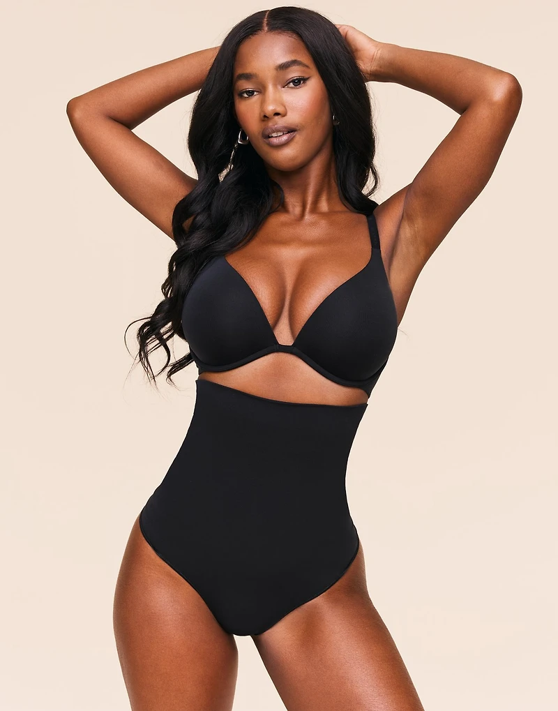This high-waisted thong is made of a seamless knit with zoning for tummy smoothing. It features an inner silicone waistband to prevent rolling, ensuring a smooth, comfortable fit all day. (Available in sizes XXS/XS-3X/4X)