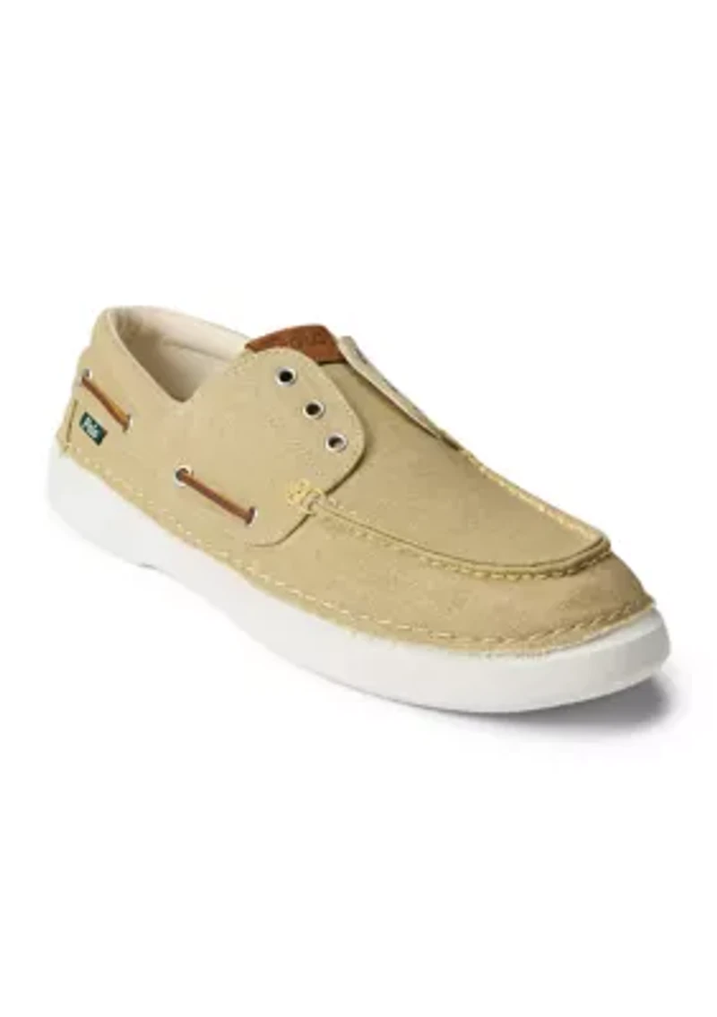 Polo’s lightweight, highly cushioned RLite sole adds premium comfort to the Mariner, which features the classic styling of a boat shoe, with hand-stitched detailing and rawhide leather laces. The cotton canvas upper is specially dyed and washed to create nuanced shading that will artfully fade over time for a unique, timeworn look. Rounded toe. Lace-up front with metal grommets and rawhide leather laces. Ergonomic molded foam footbed. Reinforced heel. Hand-stitched detailing at the toe and welt. “Polo”-embossed leather patch at the tongue. Woven “Polo” tab at the outer side of the heel. Lined with cotton twill. EVA midsole. Textured EVA outsole. Upper and lining: 100% cotton. Tongue logo patch and laces: 100% leather. Imported. Coloring may rub off onto fabrics and upholstery. China Coastal Beige