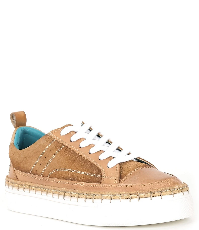 Roan Void Leather and Suede Whipstitch Lace Up Sneakers