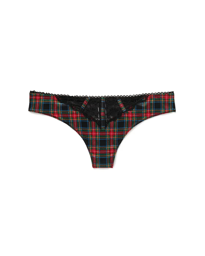 The Rochelle Thong Plaid Black satin thong is a romantic-fashion statement piece. Effortlessly chic, this style is A Thong Panty, bringing allure to your top drawer. (Available in sizes XS-XL.)