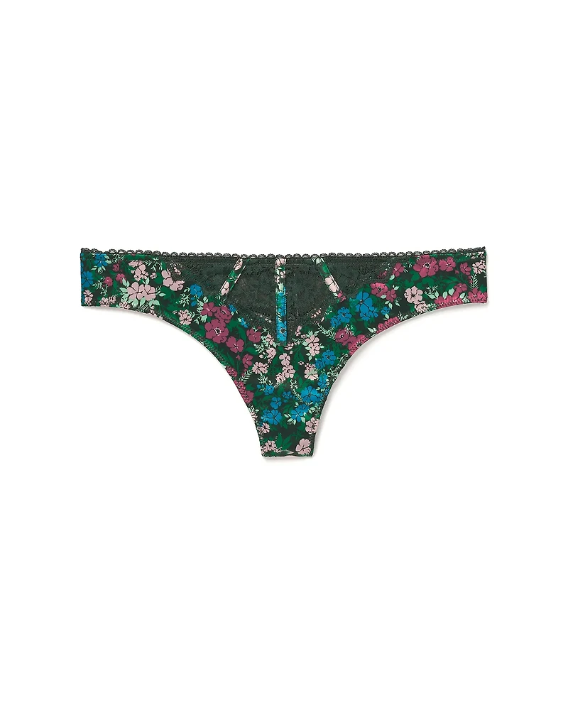 The Rochelle Thong Floral Green satin thong is a romantic addition to your top drawer. Effortlessly elegant, this style features Style: Thong Panty for a classic silhouette. (Available in sizes XS-XL.)