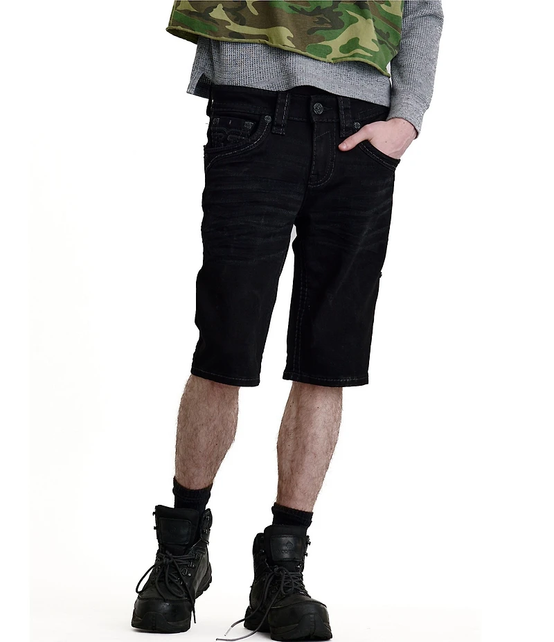 Rock Revival Camilo Relaxed Fit Fleur-De-Lis-Embroidered Denim Shorts