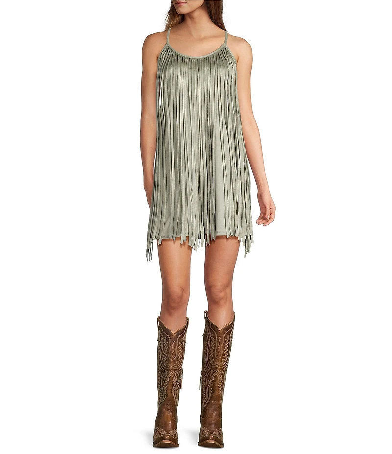 Rock & Roll Denim Microsuede Fringe Scoop Neck Sleeveless Sheath DressRock & Roll Denim Microsuede Fringe Scoop Neck Sleeveless Sheath DressRock & Roll Denim Microsuede Fringe Scoop Neck Sleeveless Sheath Dress