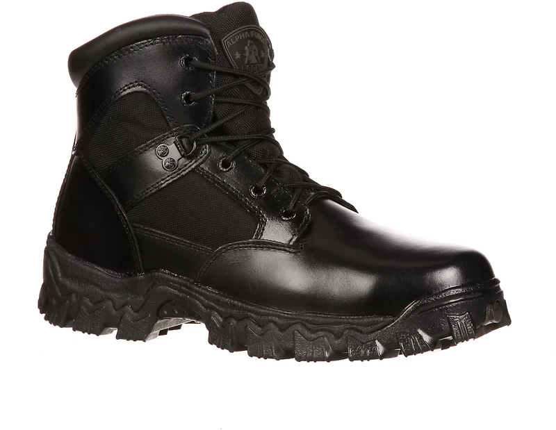 Great for wear in even the toughest of conditions, the Rocky Men's AlphaForce SR Waterproof Duty Tactical Boots feature sturdy full-grain leather uppers and oil- and slip-resistant RigiTrac outsoles. Fully waterproof construction helps keep your feet dry, and shock-absorbing Air-Port® footbeds offer comfort with every step.