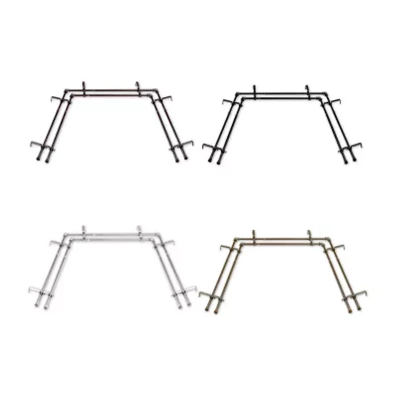 Rod Desyne is dedicated to supplying the highest quality decorative drapery hardware. With designers that create one-of-a-kind and current-style window fashion hardware, Rod Desyne offers a variety of decorating solutions from the basics to the most elegant. Specialty accessories and installation options provide a complete window decorating opportunity. This is a perfect solution for 3-sided bay window and to have a second layer of sheer panel or a valance. 2 of the double rods come in adjustable rods from 20 to 36 inches and the double center rod come in adjustable rods from 38 to 72 inches.