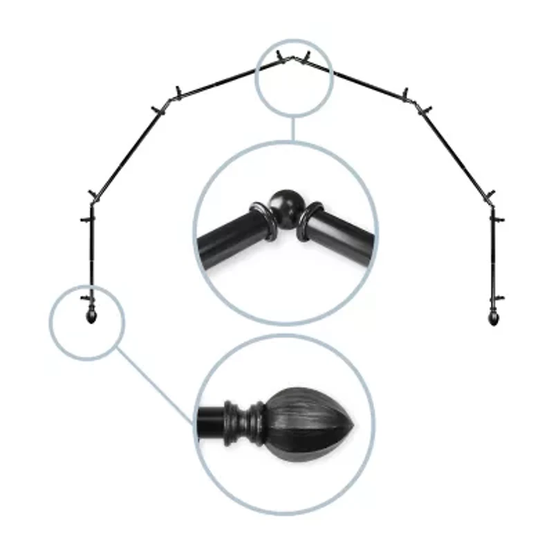 Decorate your 6 side bay window with this Rod Desyne 6-Sided Bay Window Curtain Rod. It is perfect for mounting curtains over bay windows. Includes six 13/16 inch diameter rod, adjustable from 28 to 48 inch and 5 corner connectors. Corner connector allows for a nearly 360° rotation.