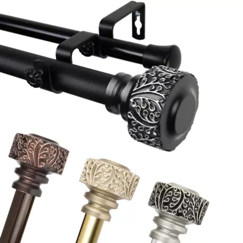 Enhance your window with this sophisticated, premium 1-inch diameter double curtain rod. The solid steel pole and stylish finials, offered in various finishes to perfectly suit your decor, provides an elegant statement to any home.