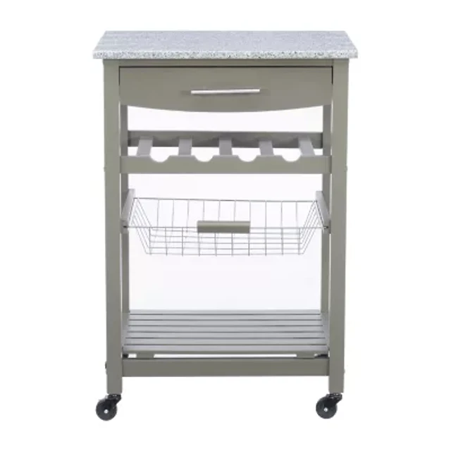 Warm Gray Rolling Kitchen Cart with Granite Top