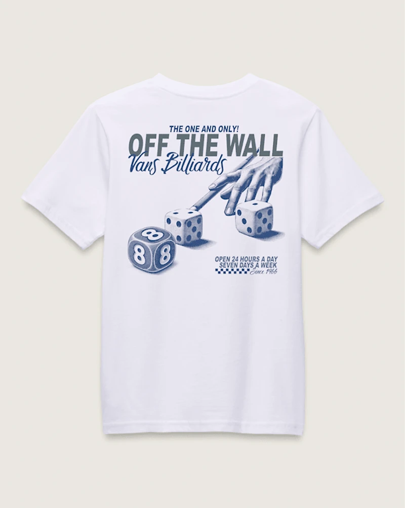 The Roll Em T-Shirt is a short sleeve crewneck tee made from a heavier weight cotton and features an off the wall billiards graphic on the back and front chest. 100% Cotton fabricShort sleeve crew neck T-shirtScreenprinted graphic