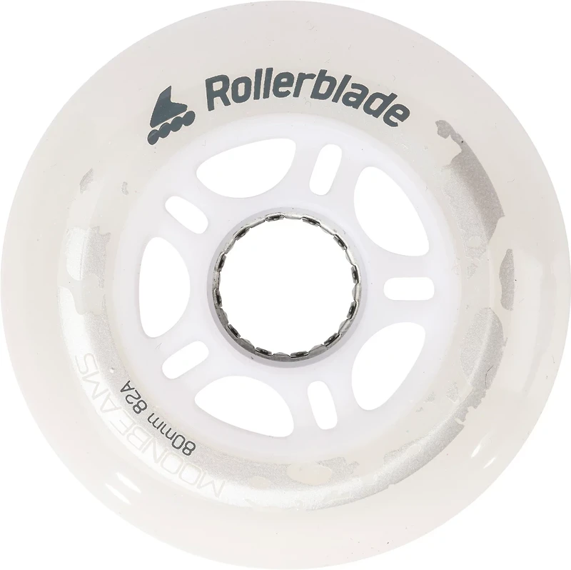 Upgrade your skates with the Rollerblade Moonbeams LED 80mm/82A Wheel 4-Pack. These high-performance wheels feature internal LEDs that blink and flash while you roll, providing both style and easy visibility. Floating spacers deliver a smooth, easy roll.